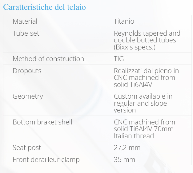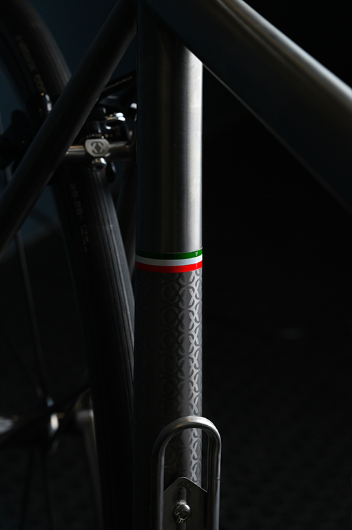 Pathos is distinguished by some original details, such as, tapered and double butted main tubes, generous chainstays, and the special Chris King D11 head-set. Details that make Pathos unique.