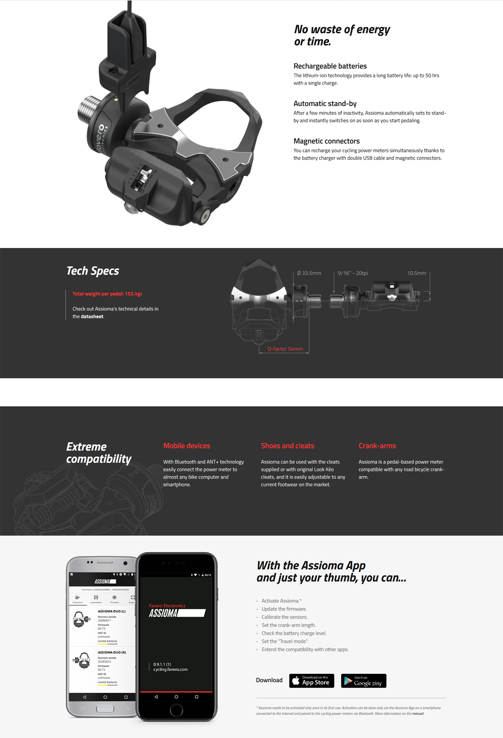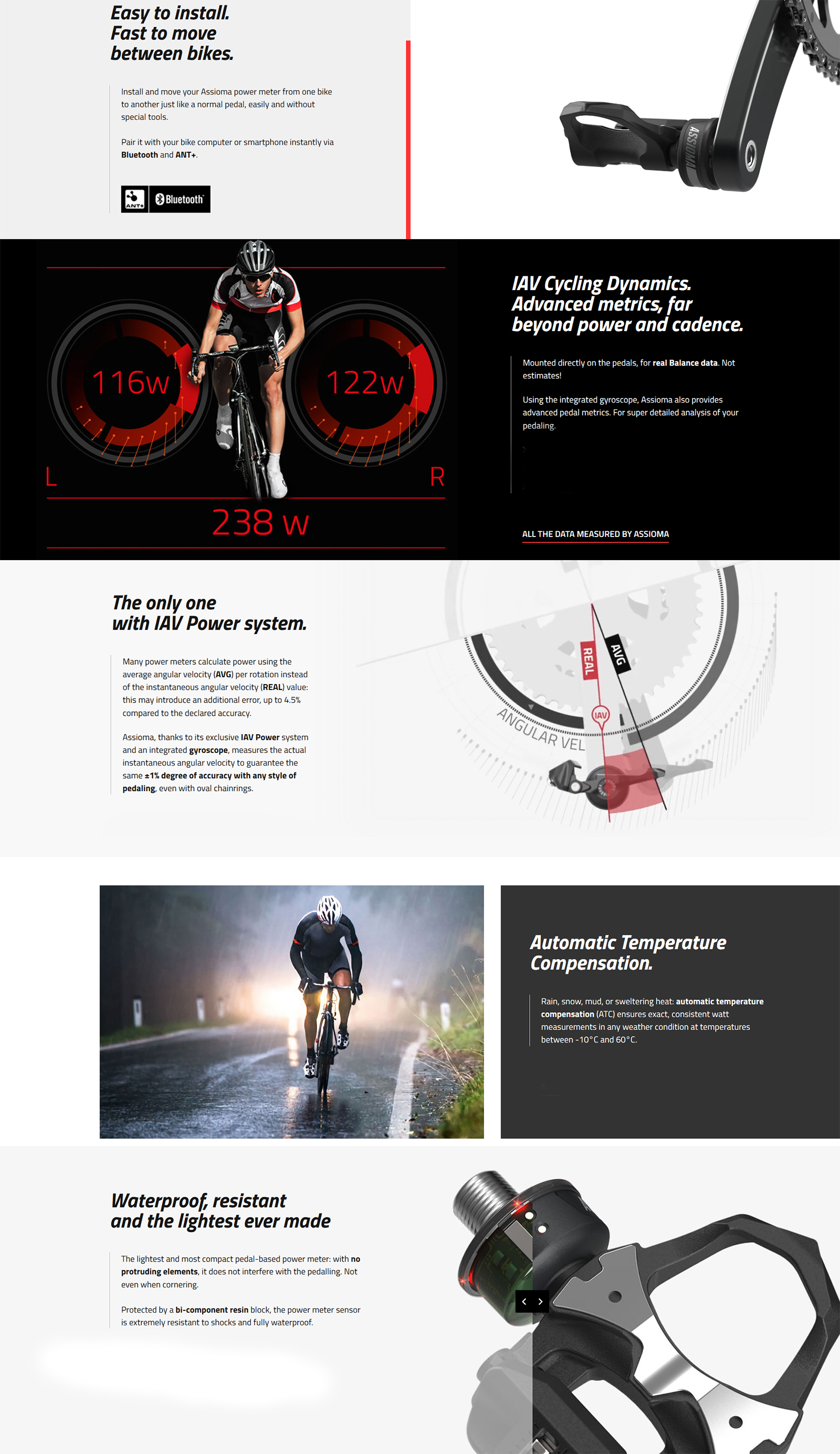 The lightest and most compact pedal-based power meter: with no protruding elements, it does not interfere with the pedalling. Not even when cornering. Protected by a bi-component resin block, the power meter sensor is extremely resistant to shocks and fully waterproof. All about the resistance of Assioma.