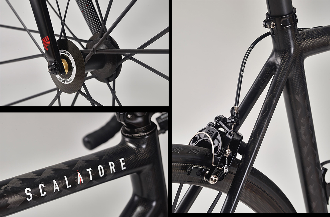 Although we are confident that the two standard designs on offer suit Scalatore well, you can pick any colour you want for a little extra money. And you can add a personal touch such as a logo, your name or your initials anywhere you choose. And if none of our 24 frame geometry set-ups fit you you can opt for custom geometry.
